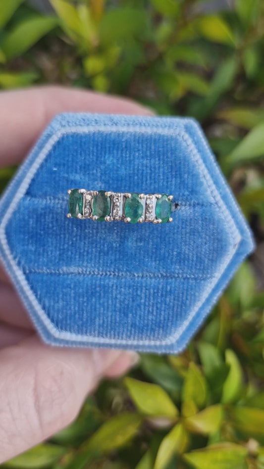 9ct Gold Diamond Emerald Ring - Size N 1/2