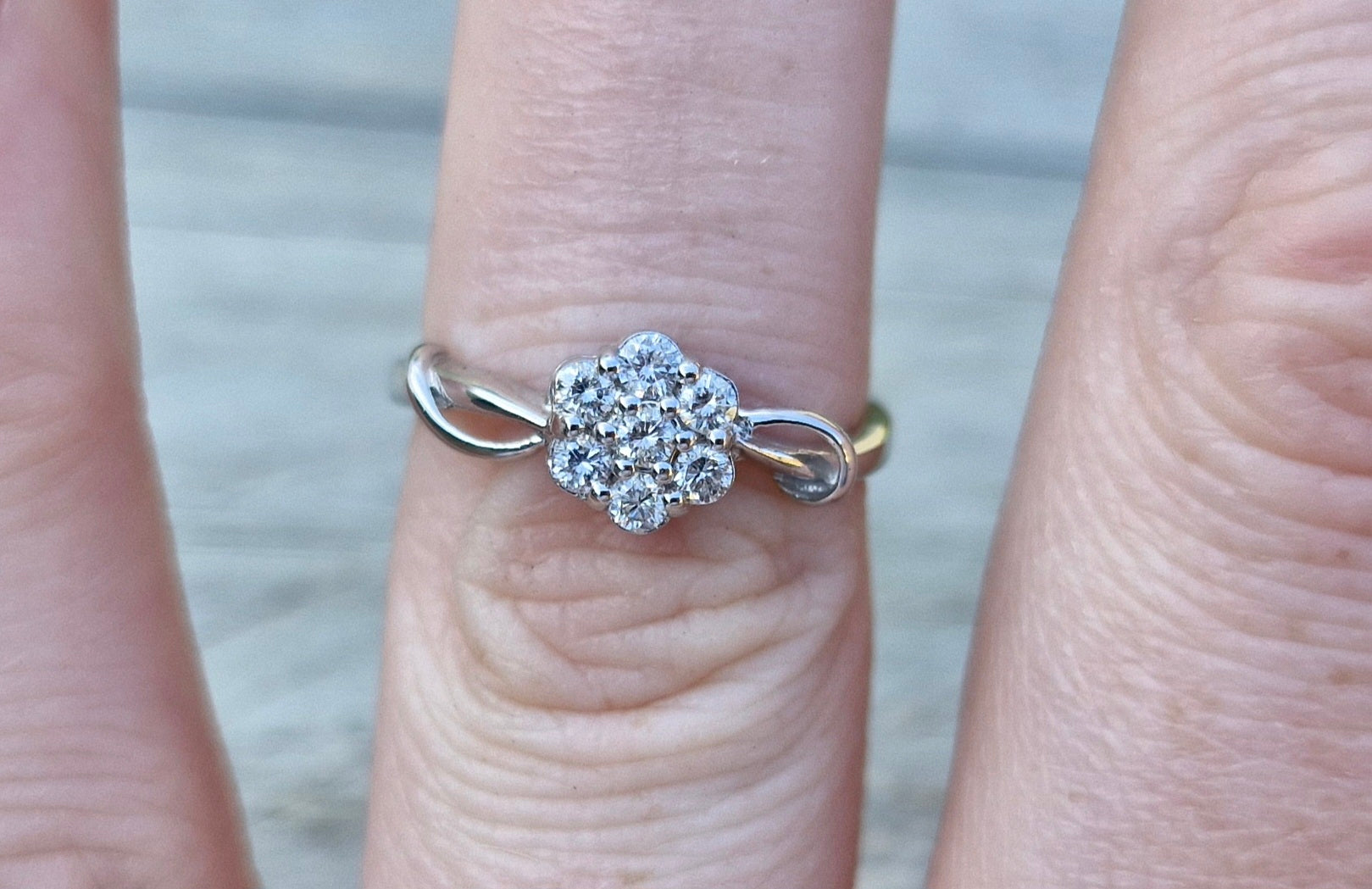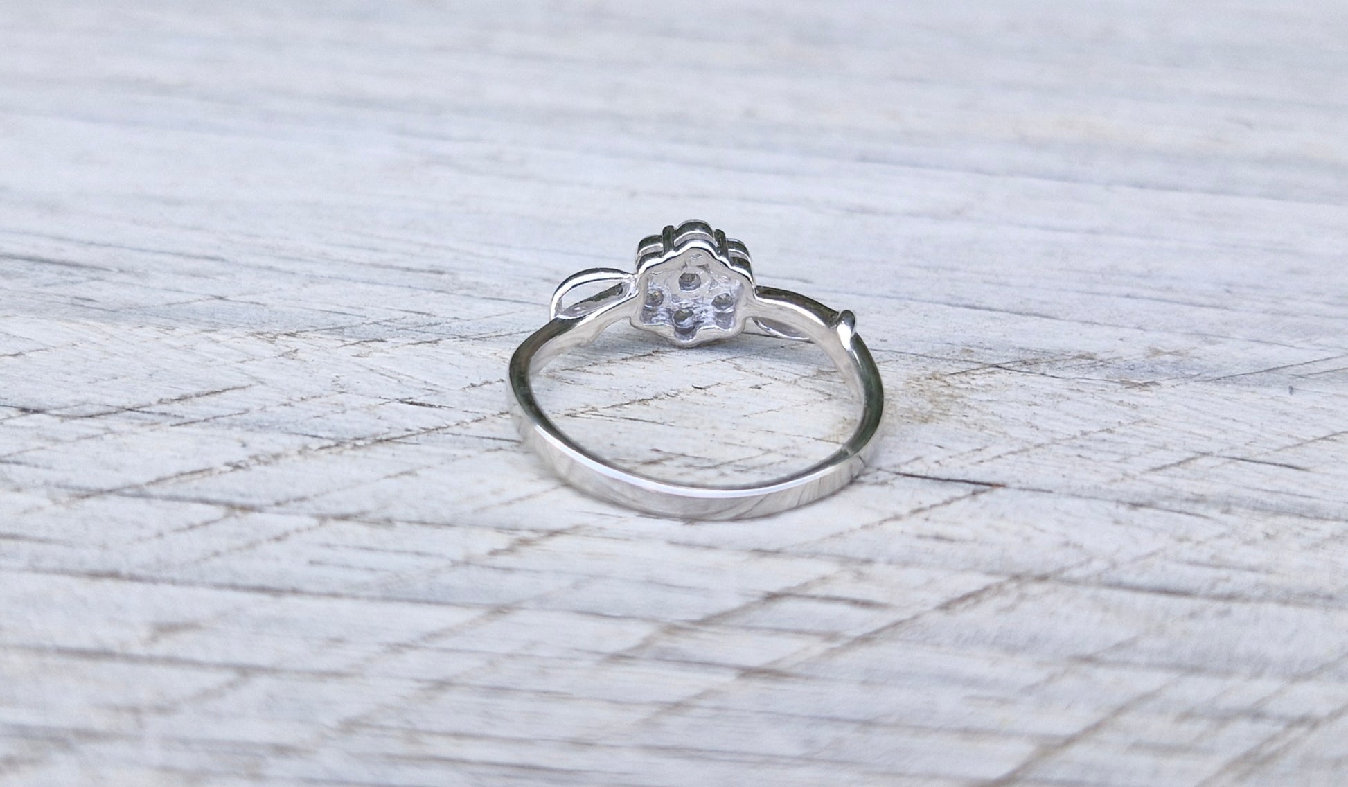 18ct White Gold, Diamond Daisy Ring - Size M 1/2