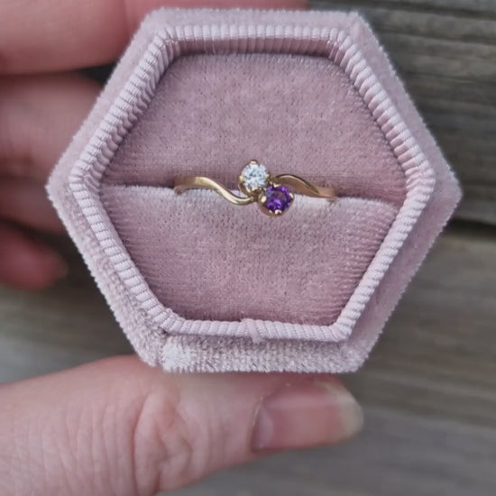 9ct Gold, Toi et Moi Amethyst & CZ Ring