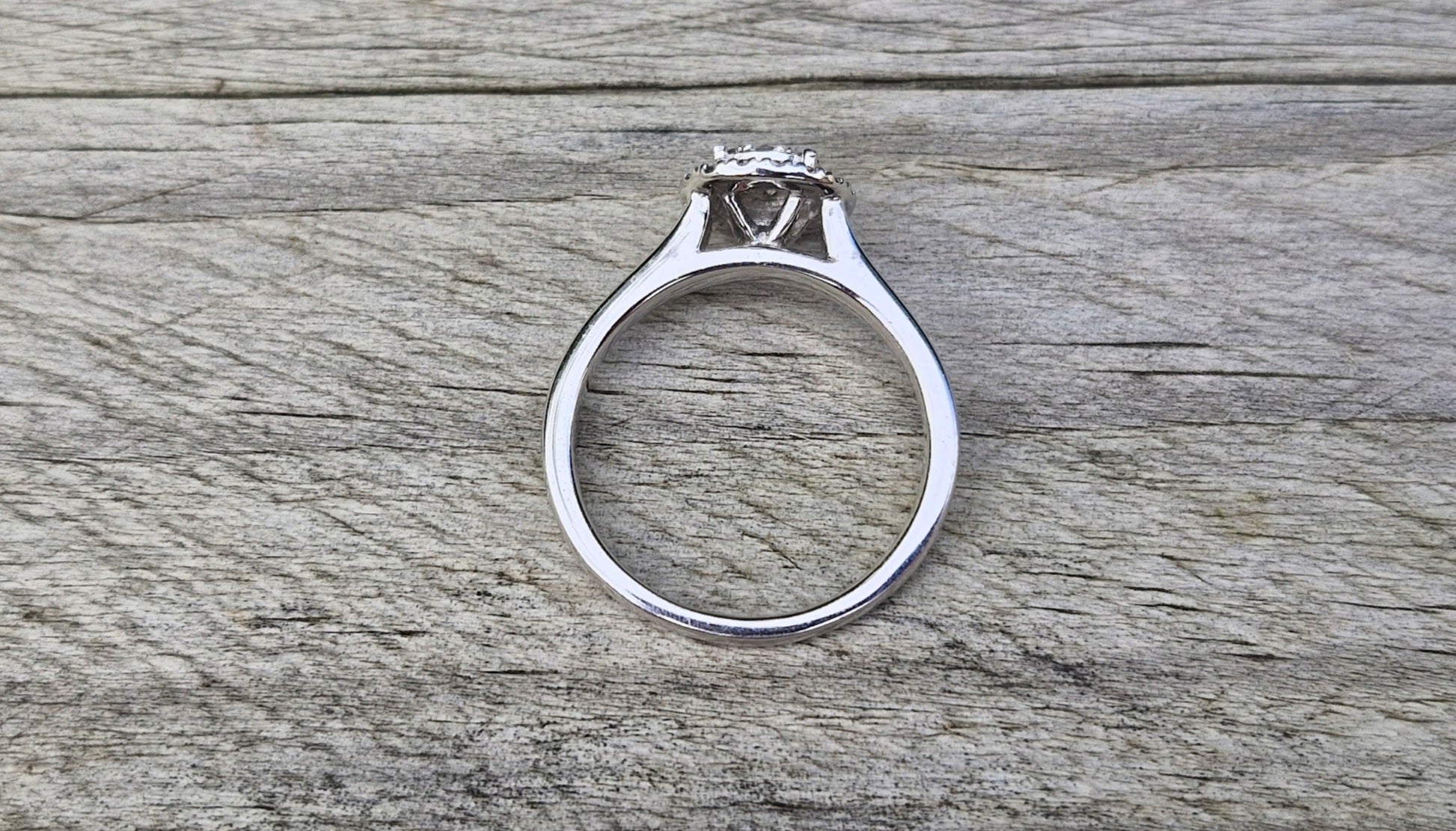 9ct White Gold Modern Diamond Halo Ring - Size O *Scrap Price*