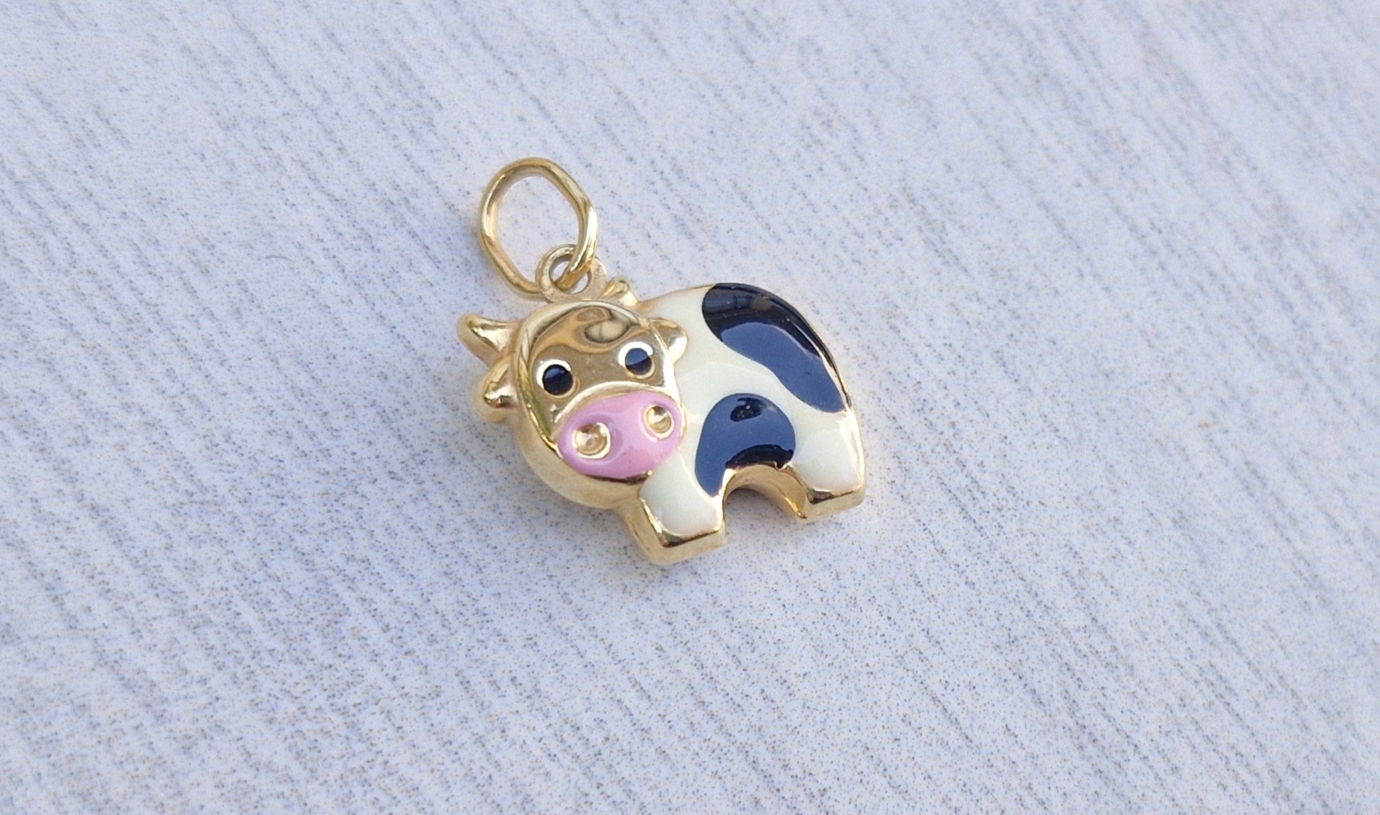 9ct Yellow Gold Enamelled Cow, Puffed Charm