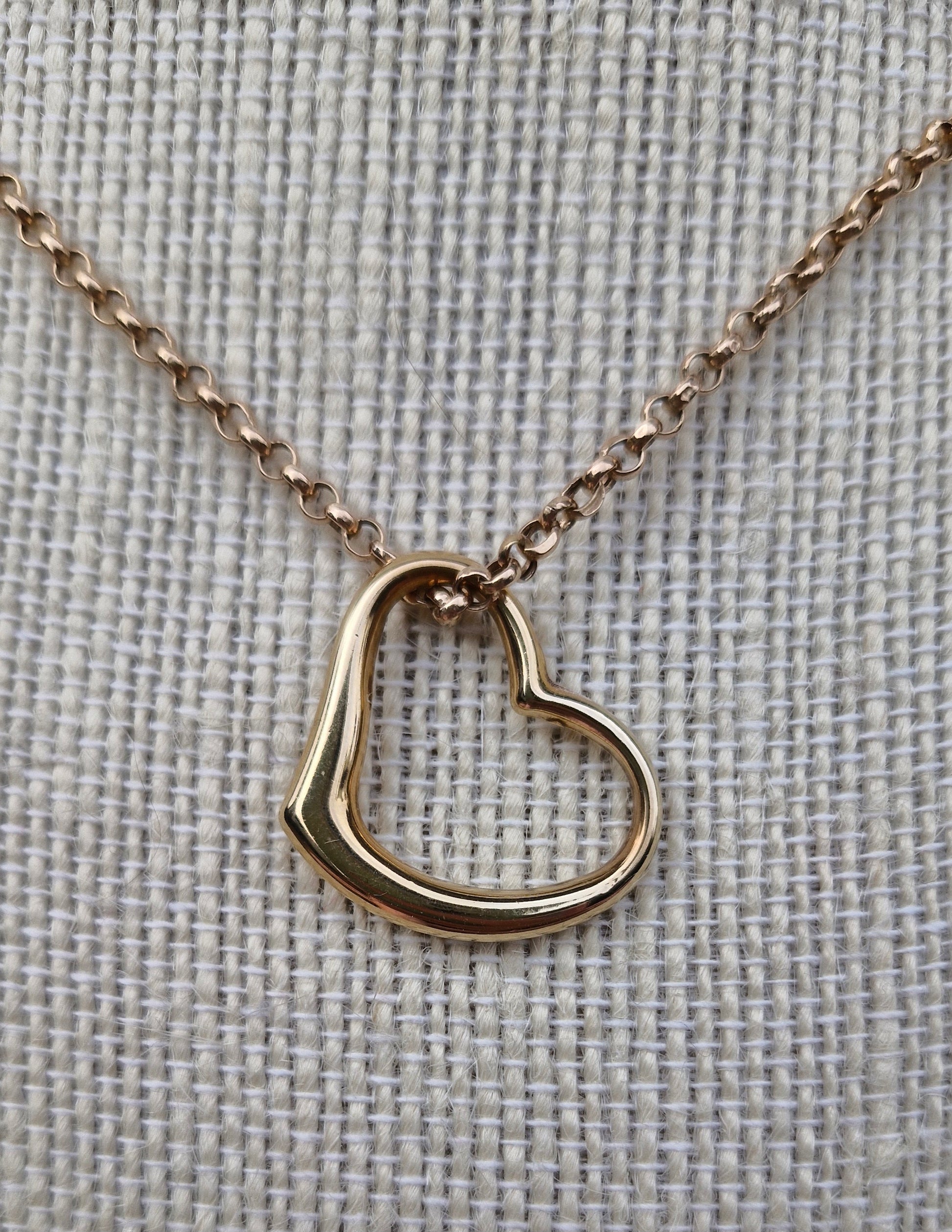 Here is a 9ct yellow gold, floating heart pendant. This pendant is versatile as it can be slid on any sized chain. This listing is for the pendant only and does not include the chain.