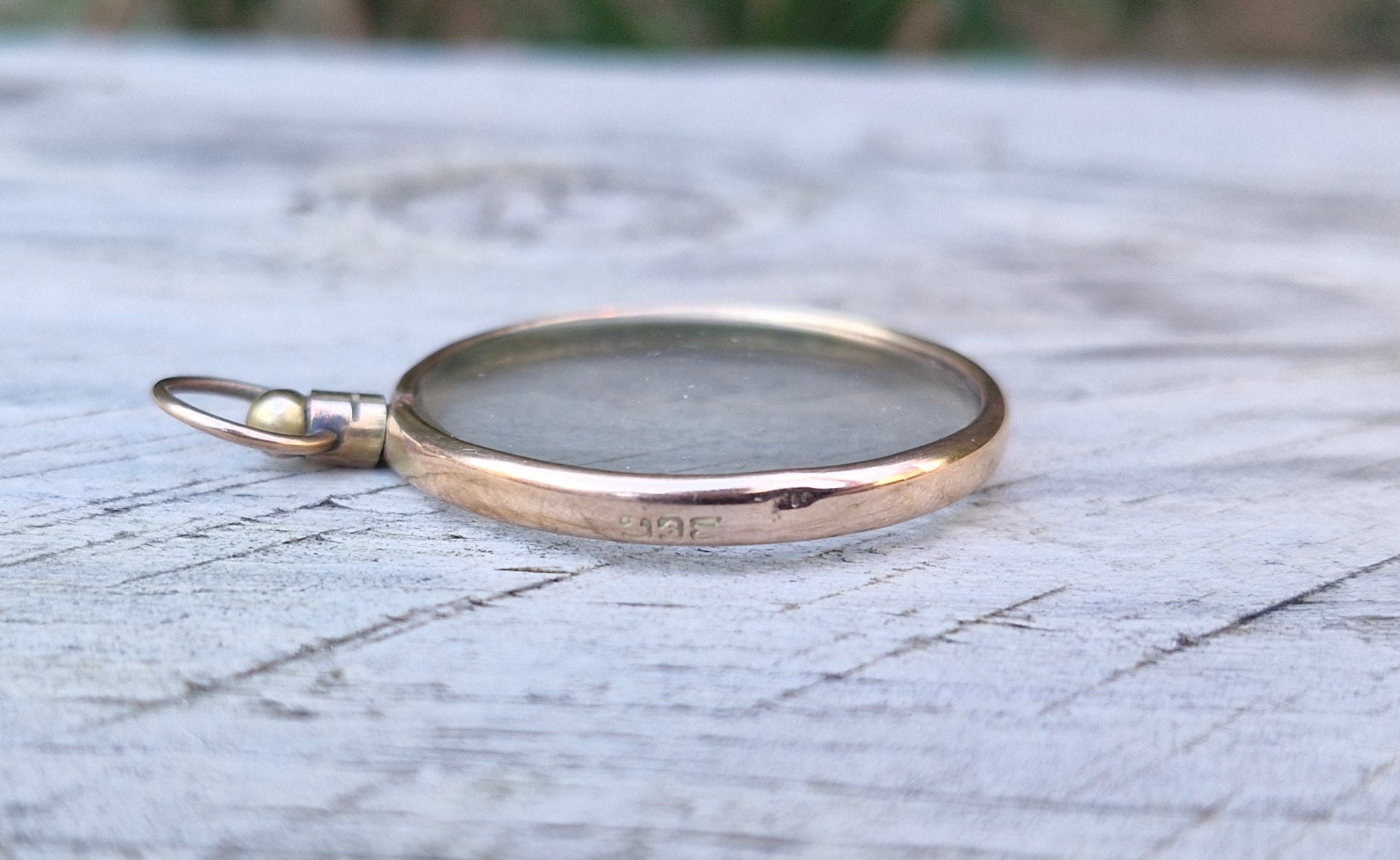 Large Antique Double Sided Glass Photo Memento Pendant, 9ct Gold