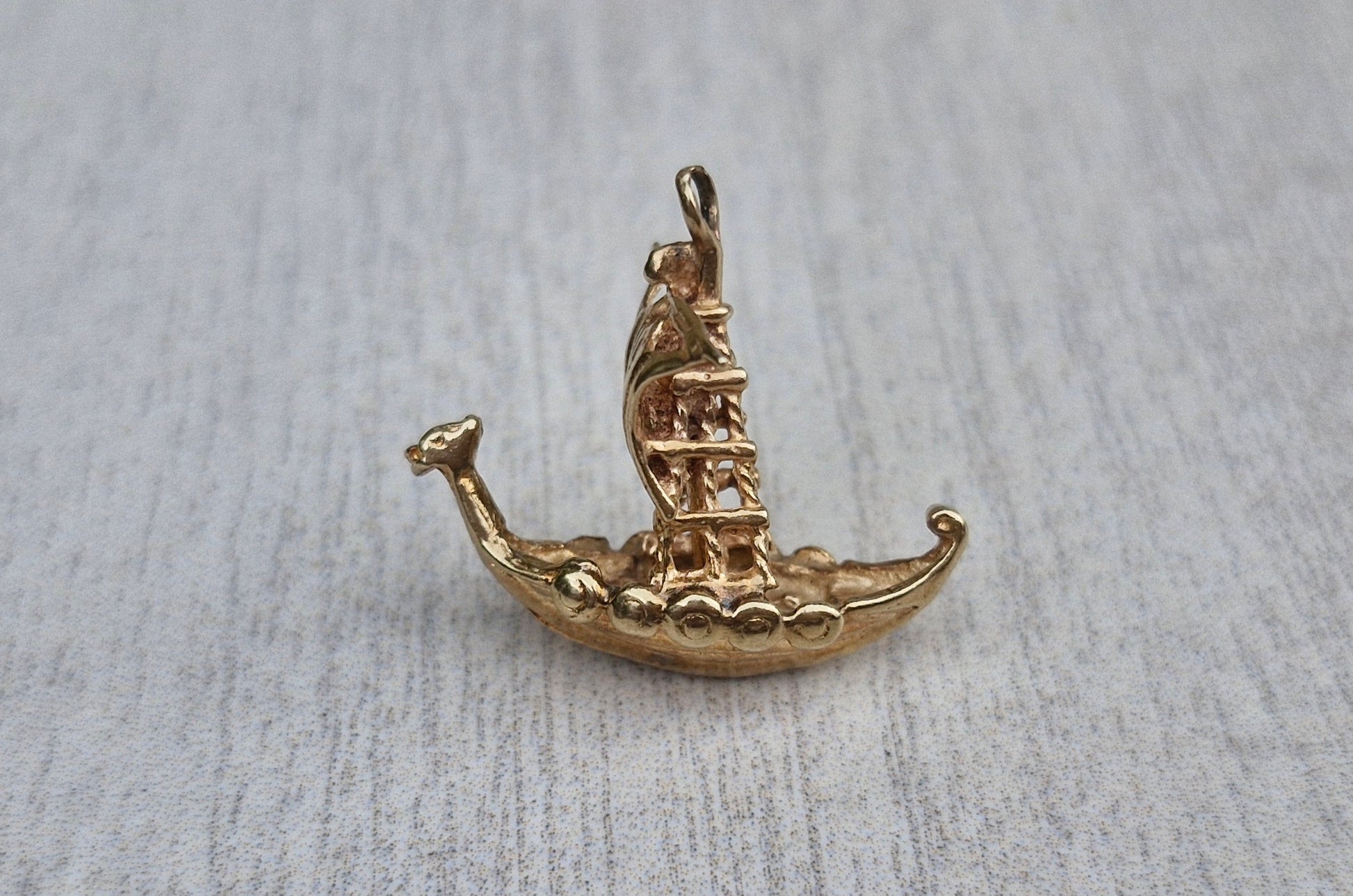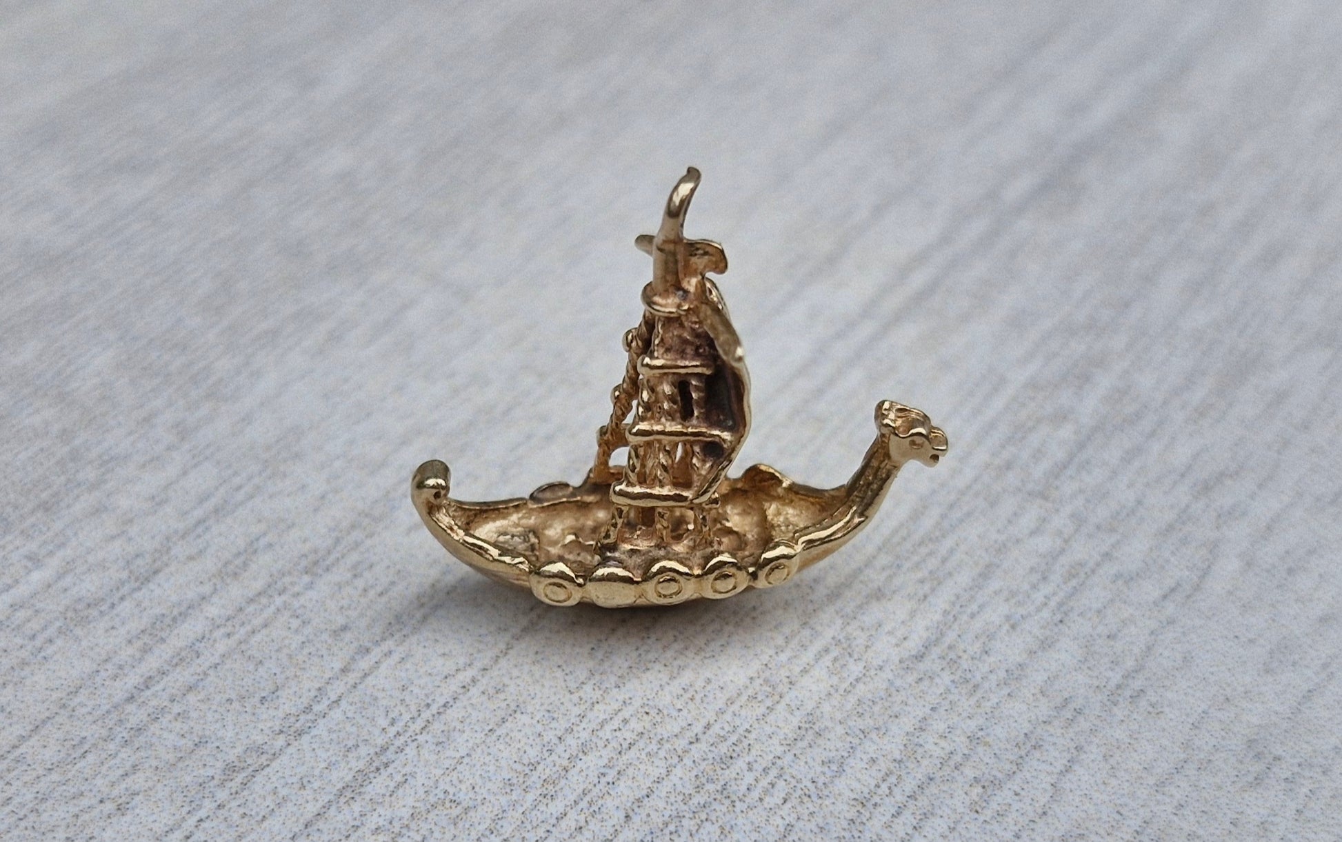 Large 9ct Gold Vintage Viking Ship Charm - 3.42 grams