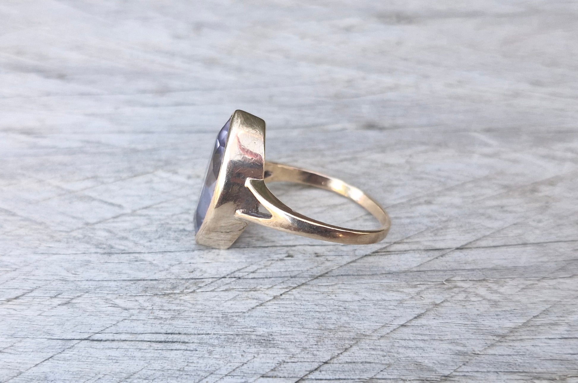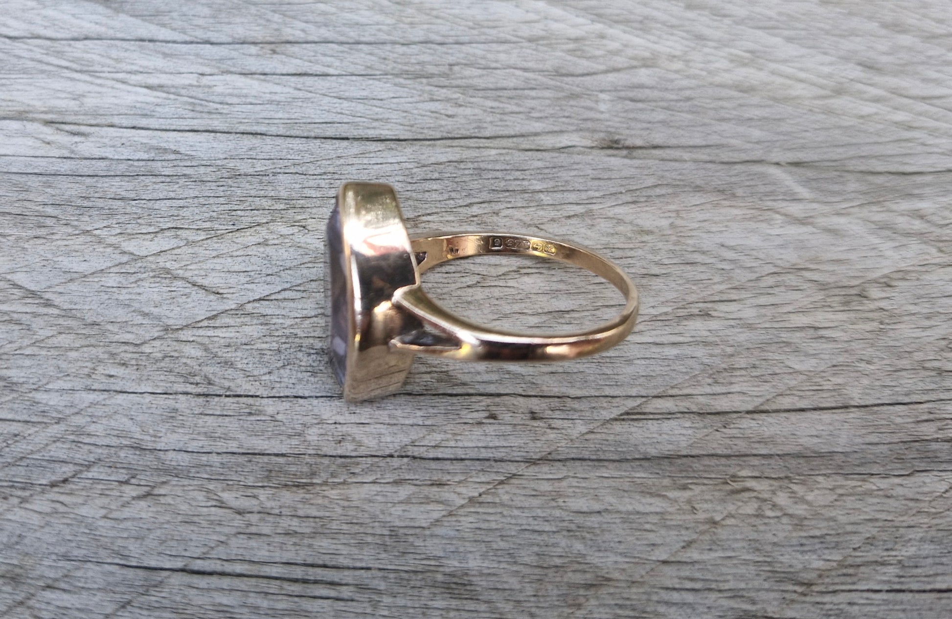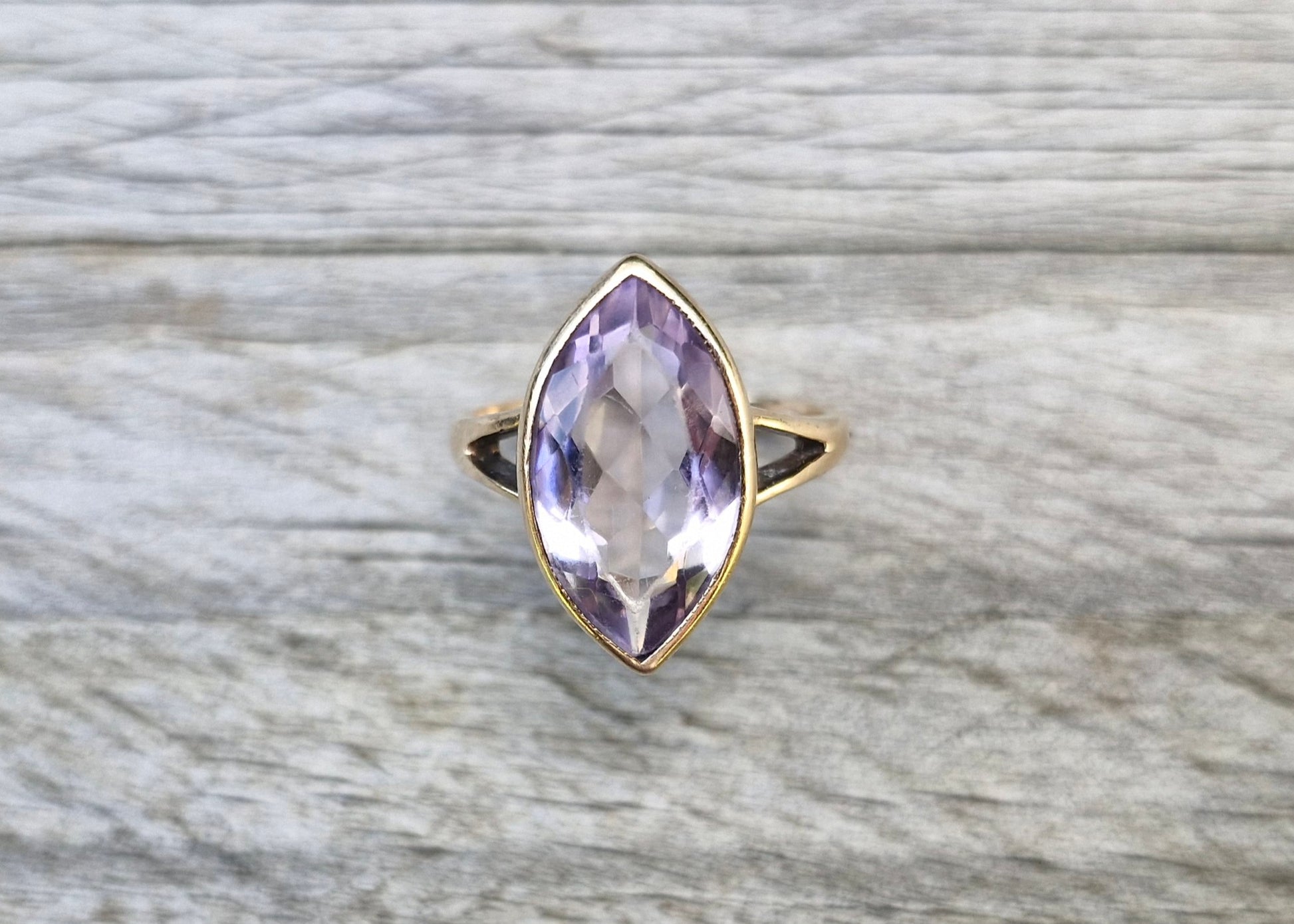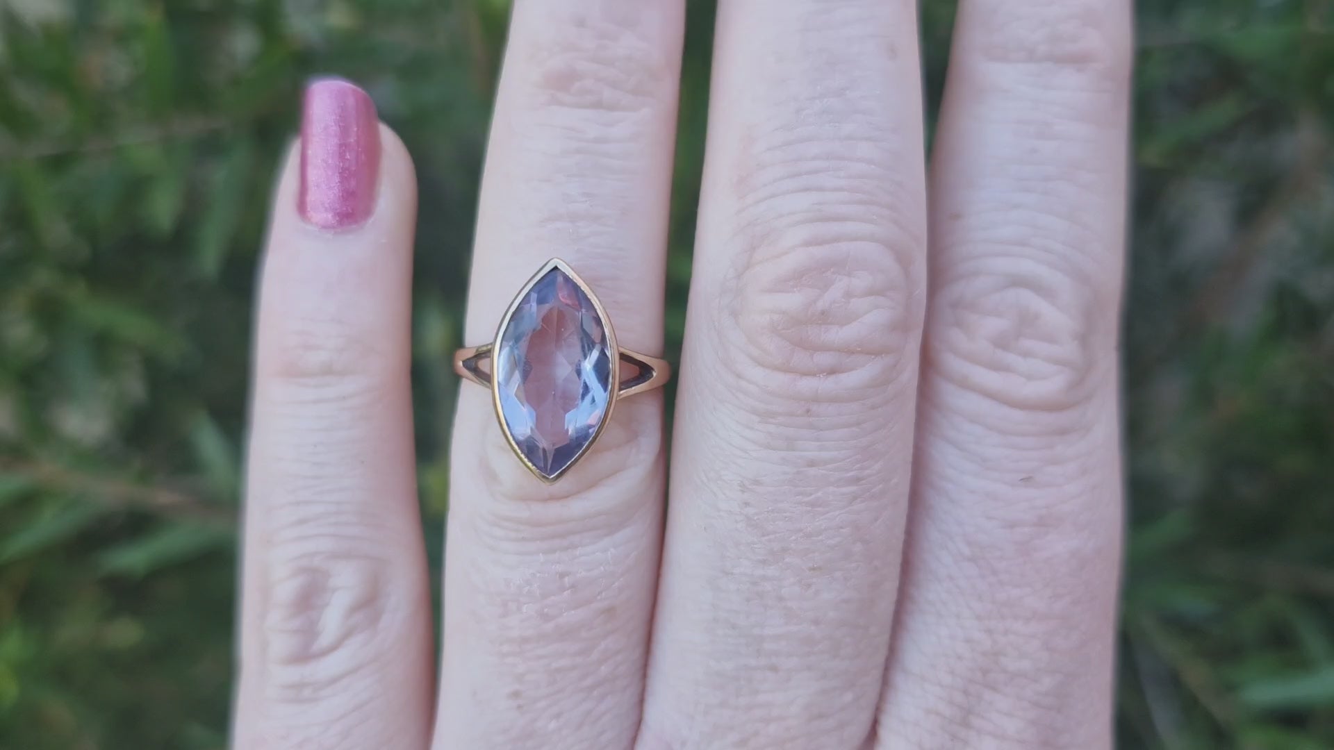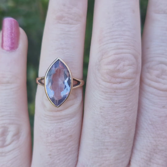 Vintage 9ct Rose Gold, Navette Lilac Stone Ring - Size M 1/2
