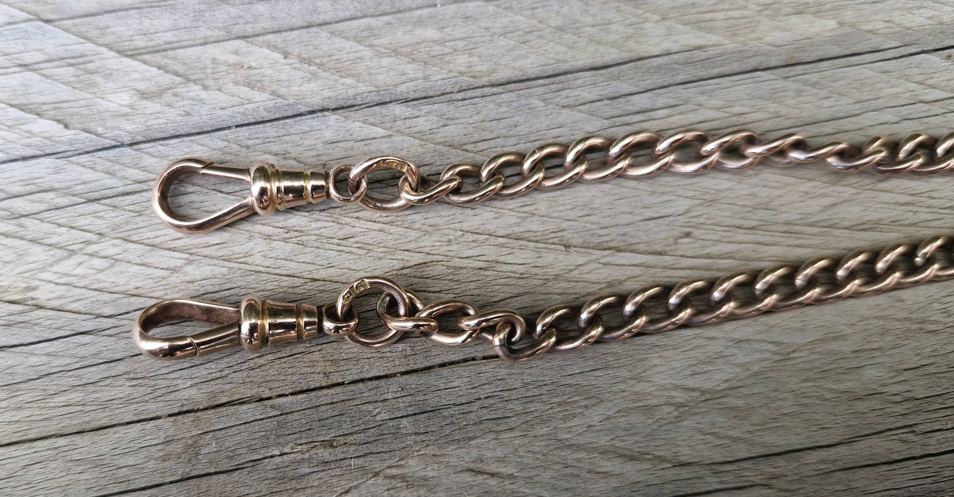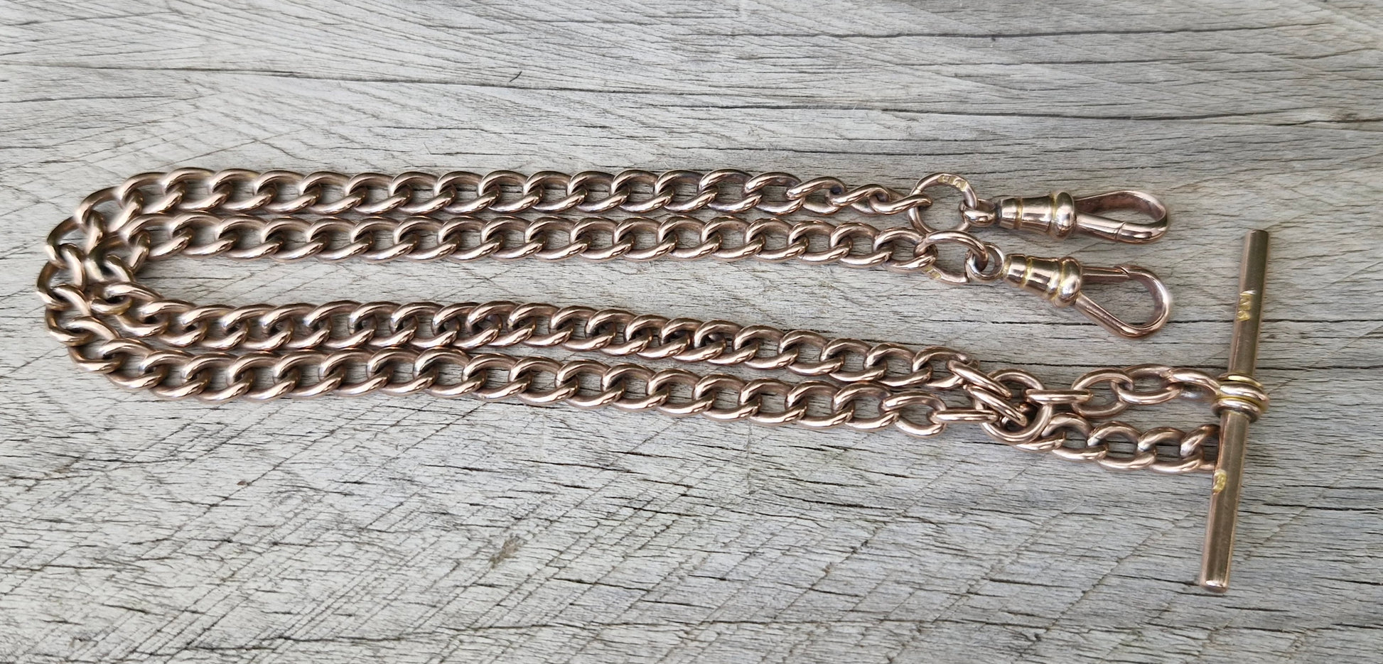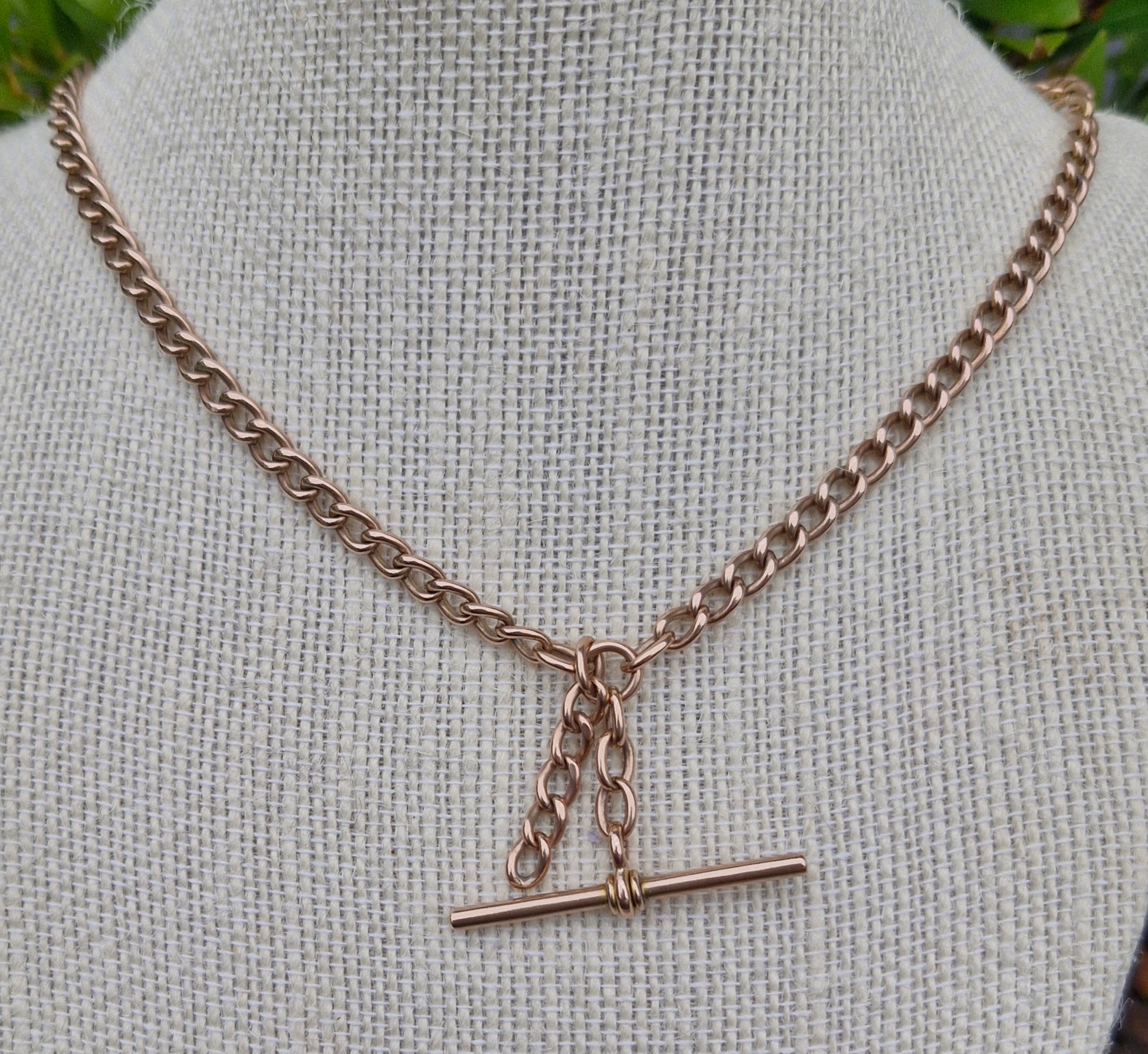 Antique Rosy Gold Necklace, 42cms with Albert Clips & T-Bar - 26.35g